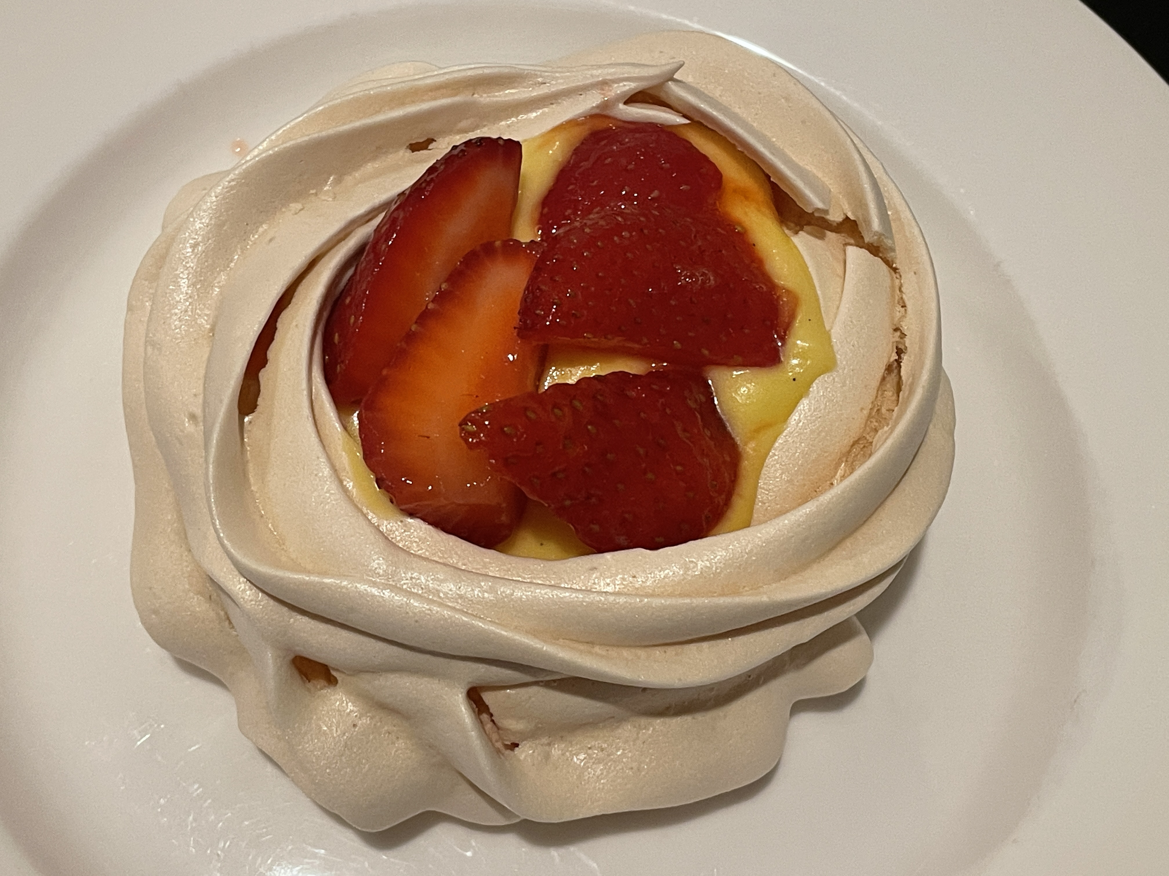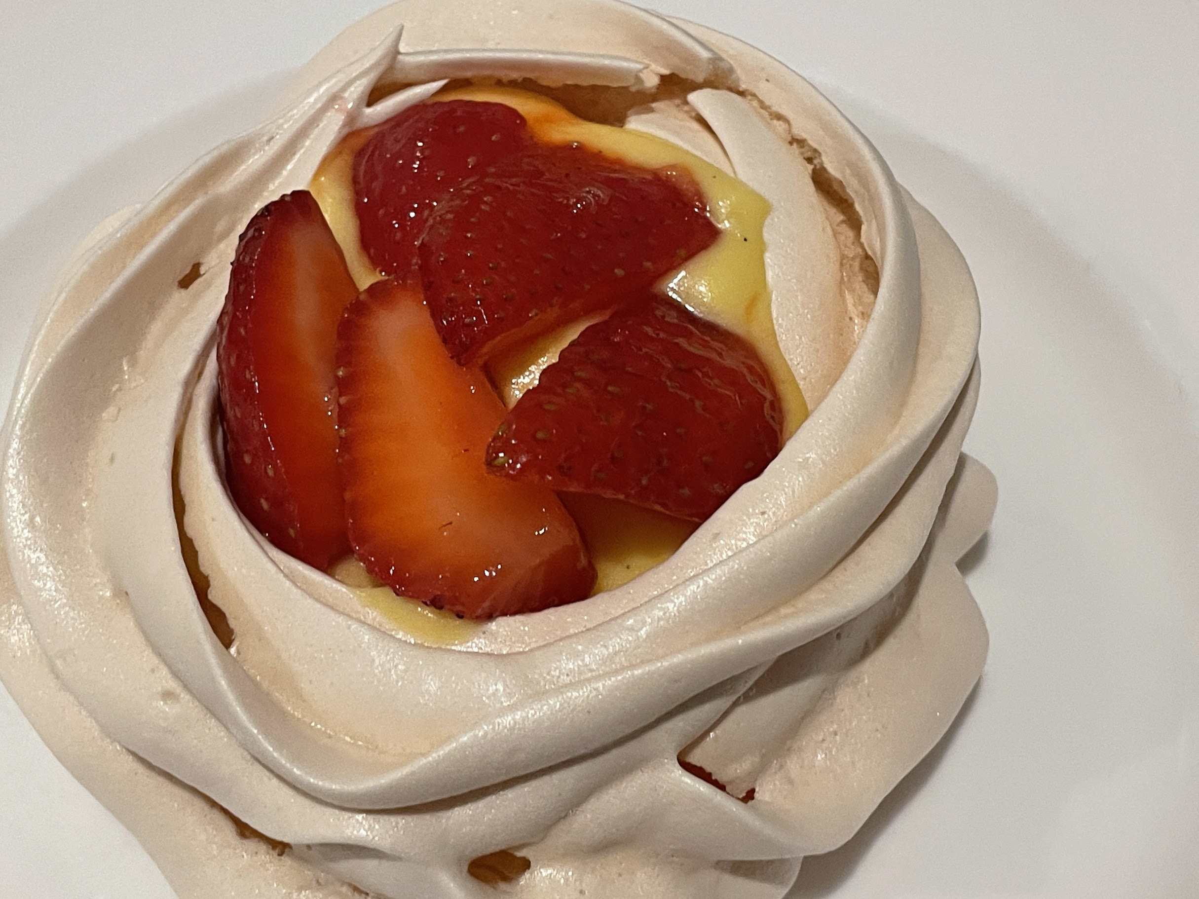 Mini Pavlova Nests Light, airy mini pavlovas, filled with a rich zabaglione cream, and topped with macerated strawberries