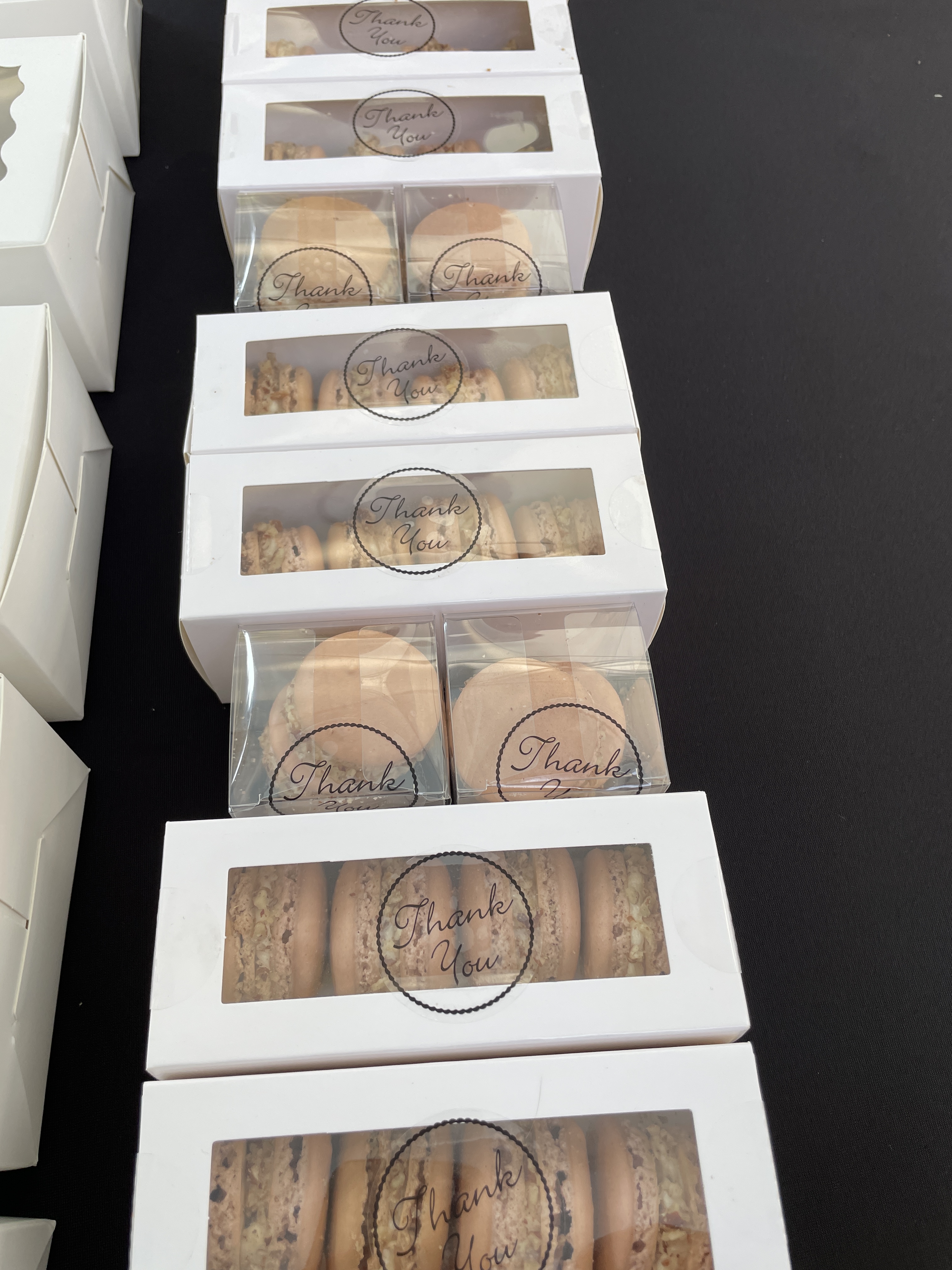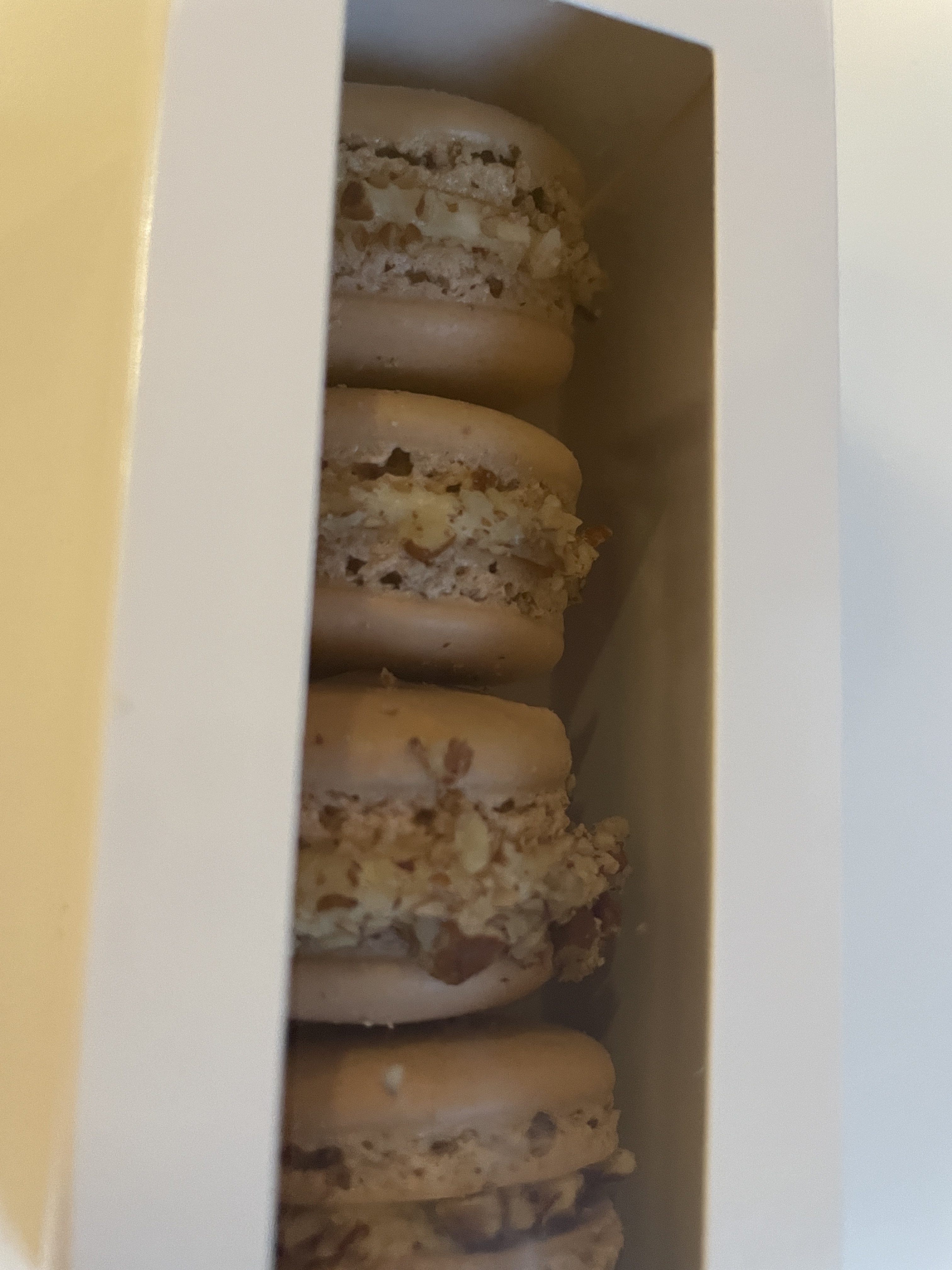 Pecan Pie Macarons Pecan flavored shell, filled with pecan pie buttercream and real pecan pie filling.