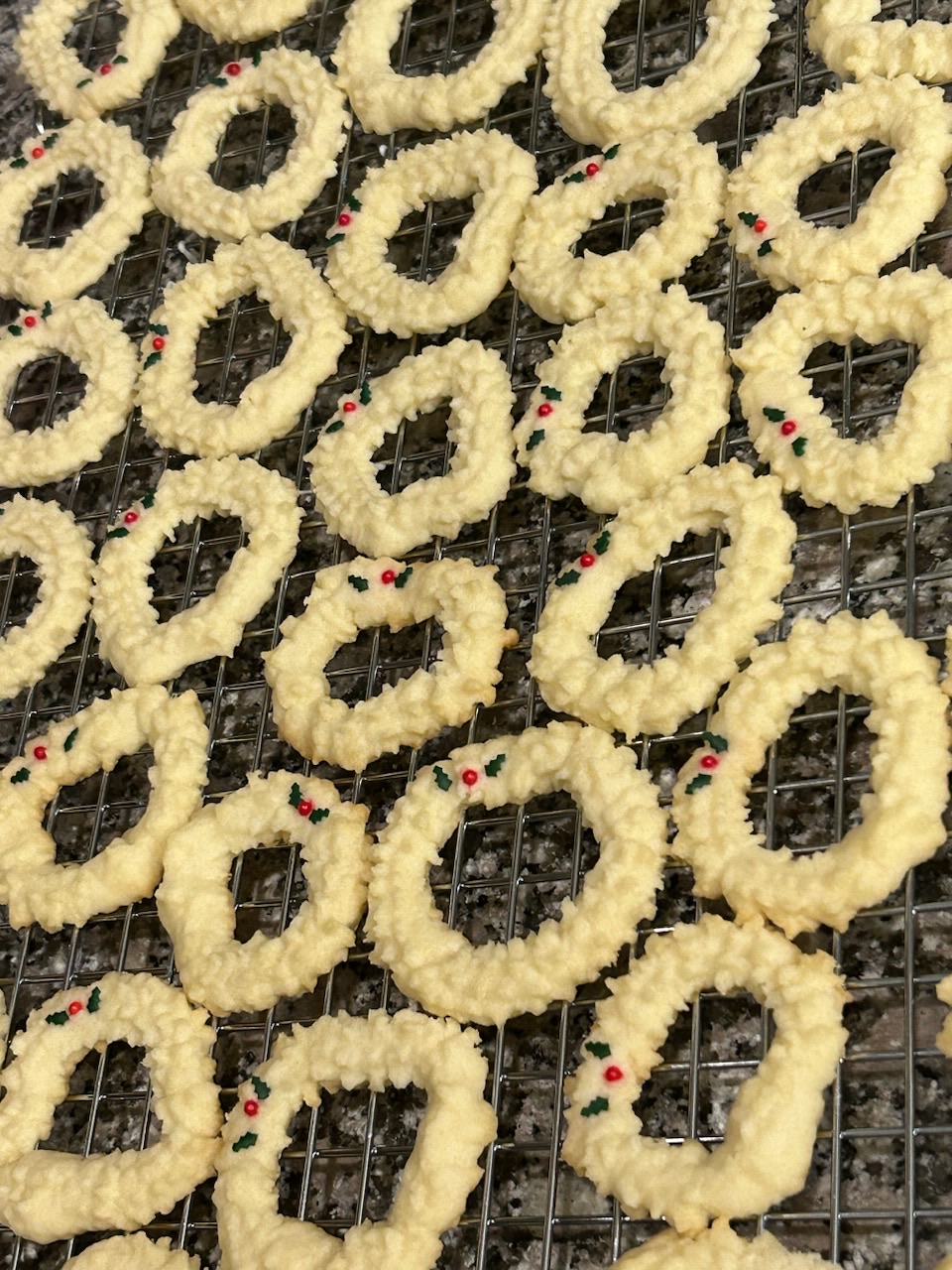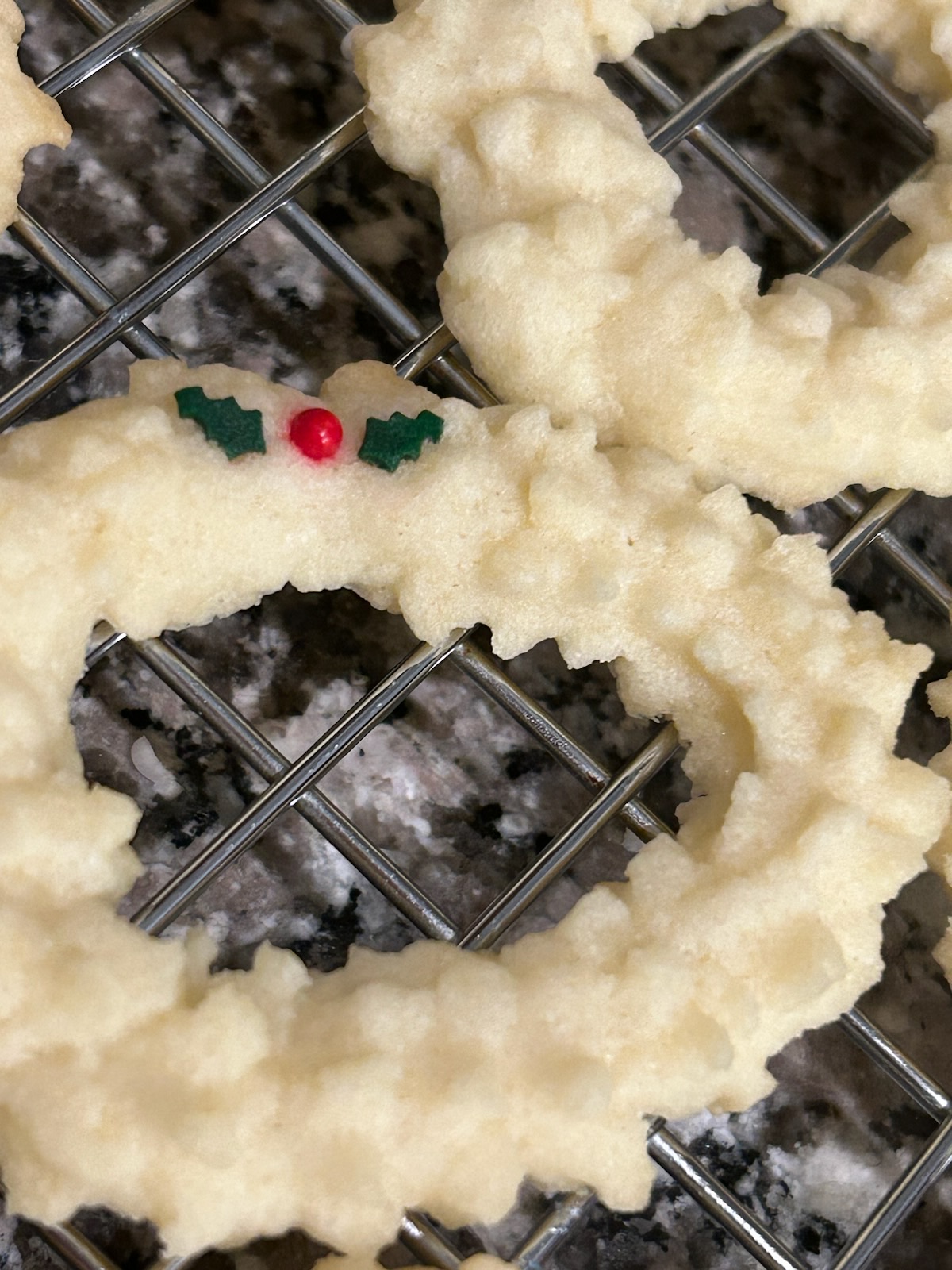 Light, buttery, shortbread-like cookies that taste like Christmas! Almond flavored with cute little holly decorations, these are some of my favorite Christmas cookies.